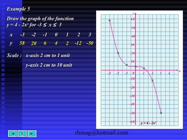 A collection of 91 Maths GCSE Sample and Specimen questions from AQA, OCR, PearsonEdexcel and WJEC Eduqas 1 (a) Complete this table for y = 2x − 3 1 (b) On the grid below, draw the graph of y = 2x − 3 for values of x from 0 to 4 2 Name Total MarksBeyond simple math and grouping (like (x2)(x4)), there are some functions you can use as well Look below to see them all They are mostly standard functions written as you might expect You can also use pi and e as their respective constants Please note You should not use fractional exponents For example, don't type x^(1/3) to compute the cube root of x Instead, use root(xWe're sketching the graph of the function y equals 1/2 x squared And if you have any previous experience with this kind of function, you're expecting some kind of parable, a shape And so let's go ahead and find some points to plot I'm going to use X values negative to negative 101 and two, so I'm going to square negative two That's four and then multiply it by 1/2